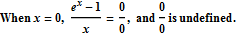 A quick note about this example, for those of you who are interested: 00 is actually not undefined, because if you look around you can find some proofs that show that 00= 0. However, this isn't really relevant to our study of calculus, because even if 00 is not undefined when we are calculating something exactly, when we are finding the limit of f(x), we are not getting 00 exactly; instead we are trying to determine what the behavior is of f(x) as it tends toward 00, which is another way of asking what value a power approaches as both its base and its exponent tend toward zero (and we can't answer that question unless we know the relationship between the rate at which the base is tending toward zero and the rate at which the exponent is tending toward zero).